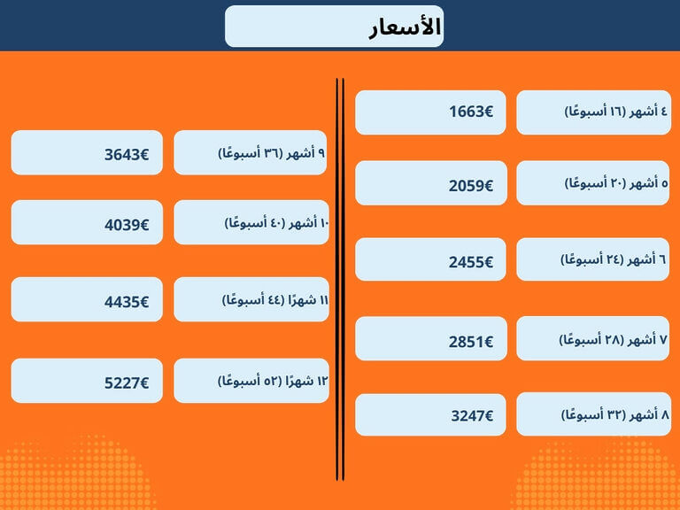 - مدة:الحد الأدنى 16 أسبوعًا